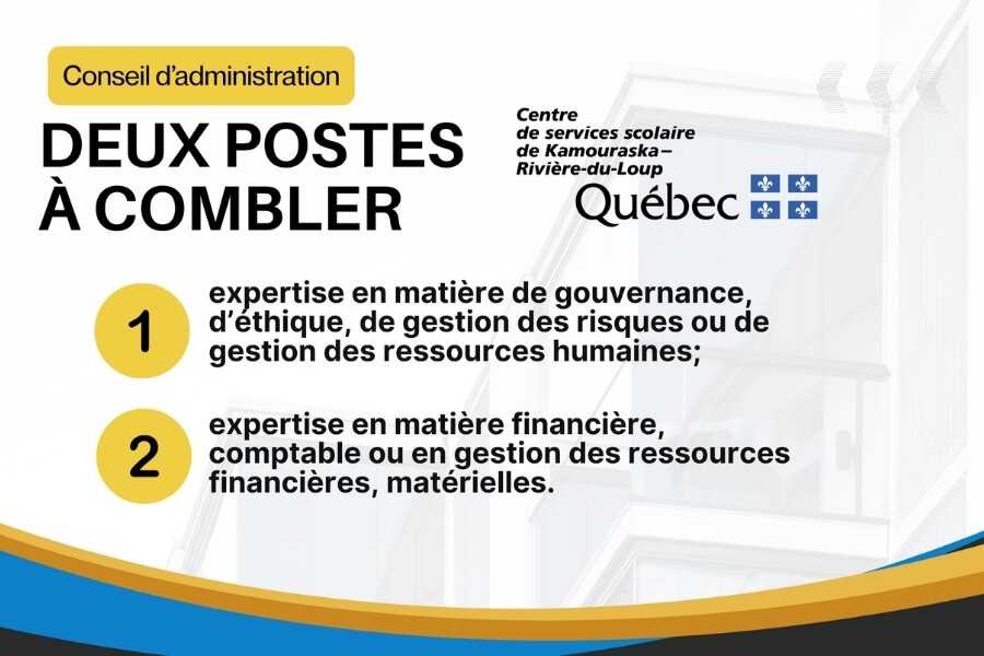 Le Centre de services scolaire (CSS) Kamouraska – Rivière-du-Loup est heureux d’annoncer une bonne nouvelle pour plusieurs communautés de son territoire.